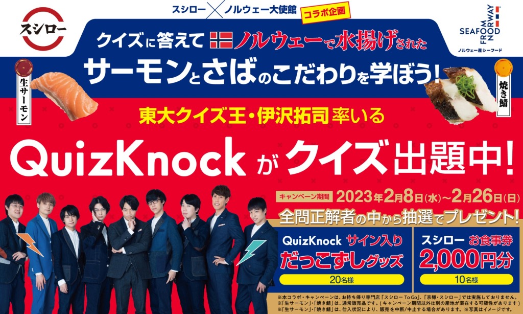 「スシロー」×「ノルウェー大使館」コラボ企画 「QuizKnock」クイズキャンペーン