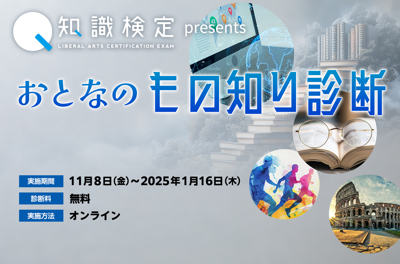 知識検定 Presents「おとなのもの知り診断」では森羅万象、全10領域の出題であなたの「もの知り度」を測定します。