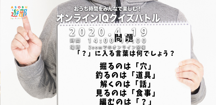 本イベント「オンラインIQクイズバトル」は、クイズ番組で出題されるような、知識はなくても頭を使えば解けるようなIQクイズを、Zoomを使ってオンラインで楽しんでみんなで競ってみよう、という企画です!