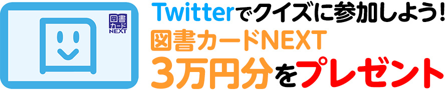 Twitterでクイズに参加しよう!図書カードNEXT3万円分をプレゼント 江頭剛 6年前 ①「小学館 宣伝部」のTwitter公式アカウント( @Shogakukan_Pub )をフォローしてください。 ②「小学館 宣伝部」Twitter公式アカウントのキャンペーン情報のクイズにツイートで答えたら応募完了!