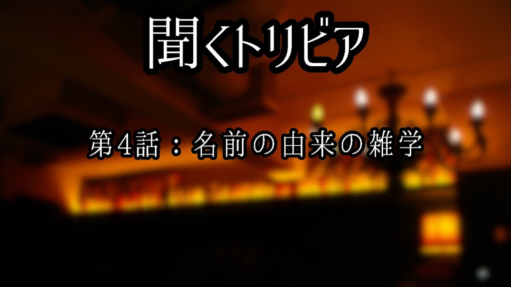 聞くトリビア 第4話『名前の由来の雑学』 江頭剛 5年前 フリーアナウンサー大橋俊夫氏による朗読雑学シリーズ『聞くトリビア』第4話です。 収録環境を見直し、音質等向上してより聞きやすくなりました。 この動画の記事版である「読む編」はこちら。 QUIZBANG公式YouTubeチャンネルはこちら。