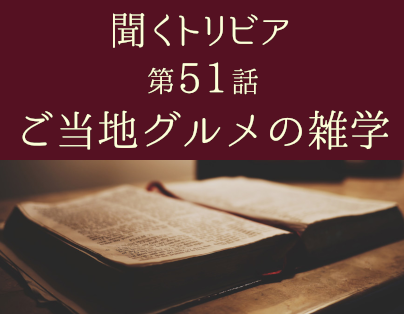 聞くトリビア 第51話『ご当地グルメの雑学』 江頭剛 4年前 フリーアナウンサー大橋俊夫氏による朗読雑学シリーズ『聞くトリビア』第51話です。 通勤・通学や家事の合間、作業用BGM、睡眠導入などにご活用ください。 聞くトリビアは毎週金曜日18時更新予定です。 聞くトリビアの再生リストはこちら。