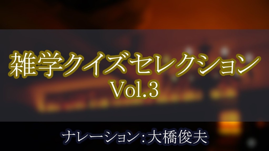 『Q.乗り物の「バス」の正式名称は?【雑学クイズ100問】/聞くトリビア』YOUTUBEにて公開! 江頭剛 2年前 フリーアナウンサー大橋俊夫氏による朗読雑学シリーズ『聞くトリビア』公開です。 今回は雑学クイズ100問出題! フリーアナウンサー大橋俊夫氏の心地良い声でのクイズ出題をぜひお楽しみください。 クイズに挑戦するもよし、雑学ネタとして知識を蓄えるも良し! 聴くだけで賢くなれること間違いナシ!! 通勤・通学や家事の合間、作業用BGM、睡眠導入などにご活用ください。 前回動画はこちら 聞くトリビアの再生リストはこちら。