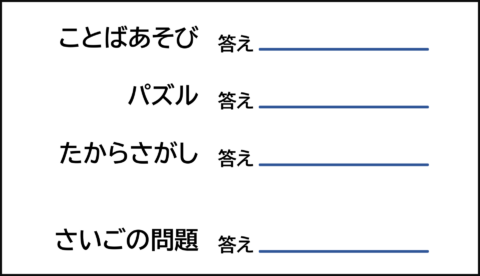 ことば遊び、パズル、たからさがし、さいごの問題と解説(8ページ)をダウンロードいただけます。