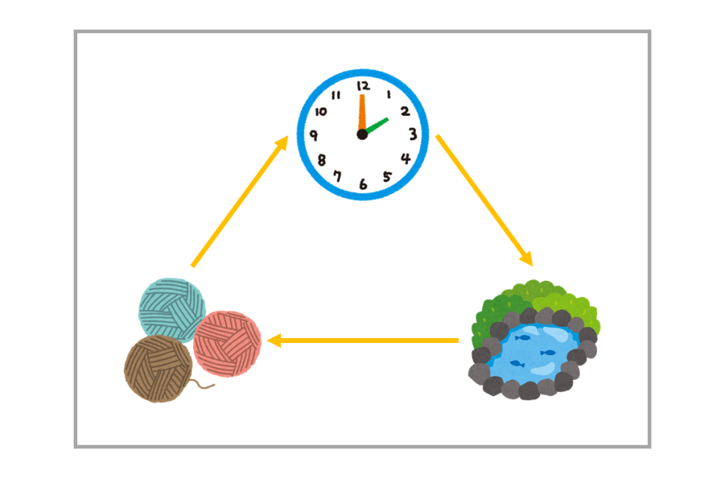 池→毛糸→?→池、となっていますね。