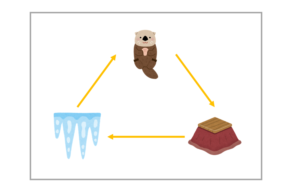 こたつ→つらら→?→こたつ、となっていますね。