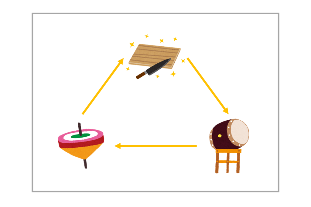 太鼓→コマ→?→太鼓、となっていますね。