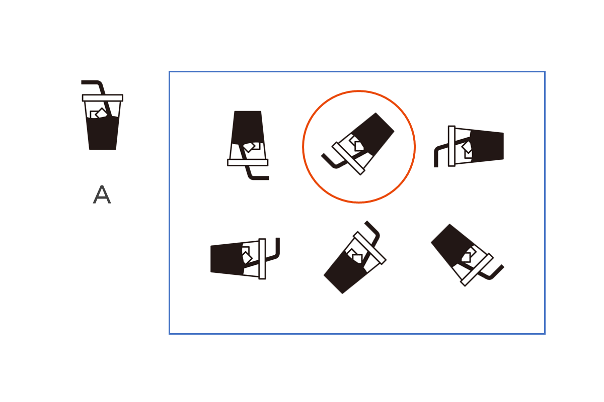 6つの飲み物のイラストの中から、1つだけ異なるものを探してください。