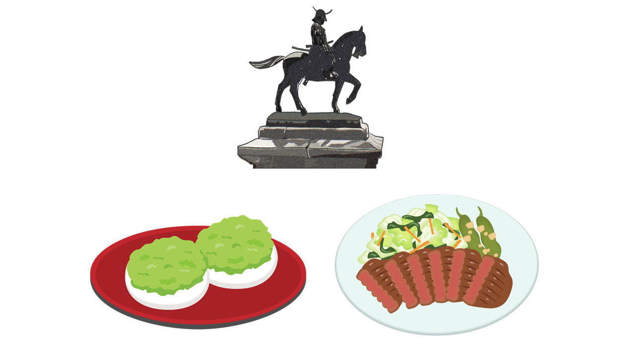 ずんだ餅:枝豆を潰し砂糖と混ぜてつくる「ずんだ」の餡は、伊達政宗が陣太刀(じんだち)で豆を潰したという伝説から名付けられたという説があります。