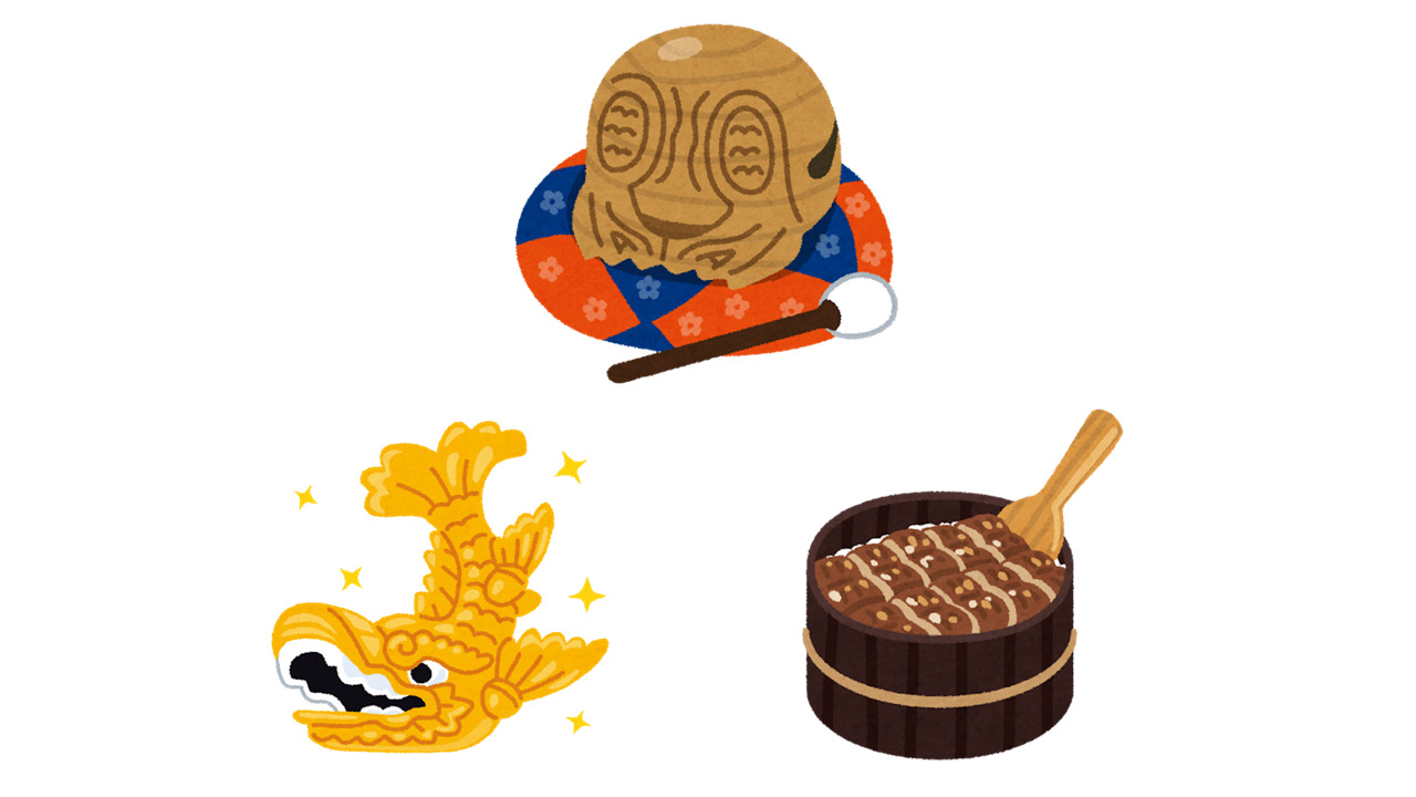 しゃちほこ:愛知県の名古屋城には、火除けの守り神として金のしゃちほこがあります。