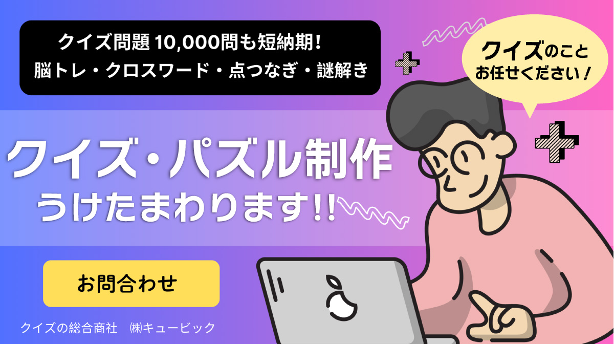 株式会社キュービックでは、ご要望に応じたクイズ問題、パズル制作をいたします。