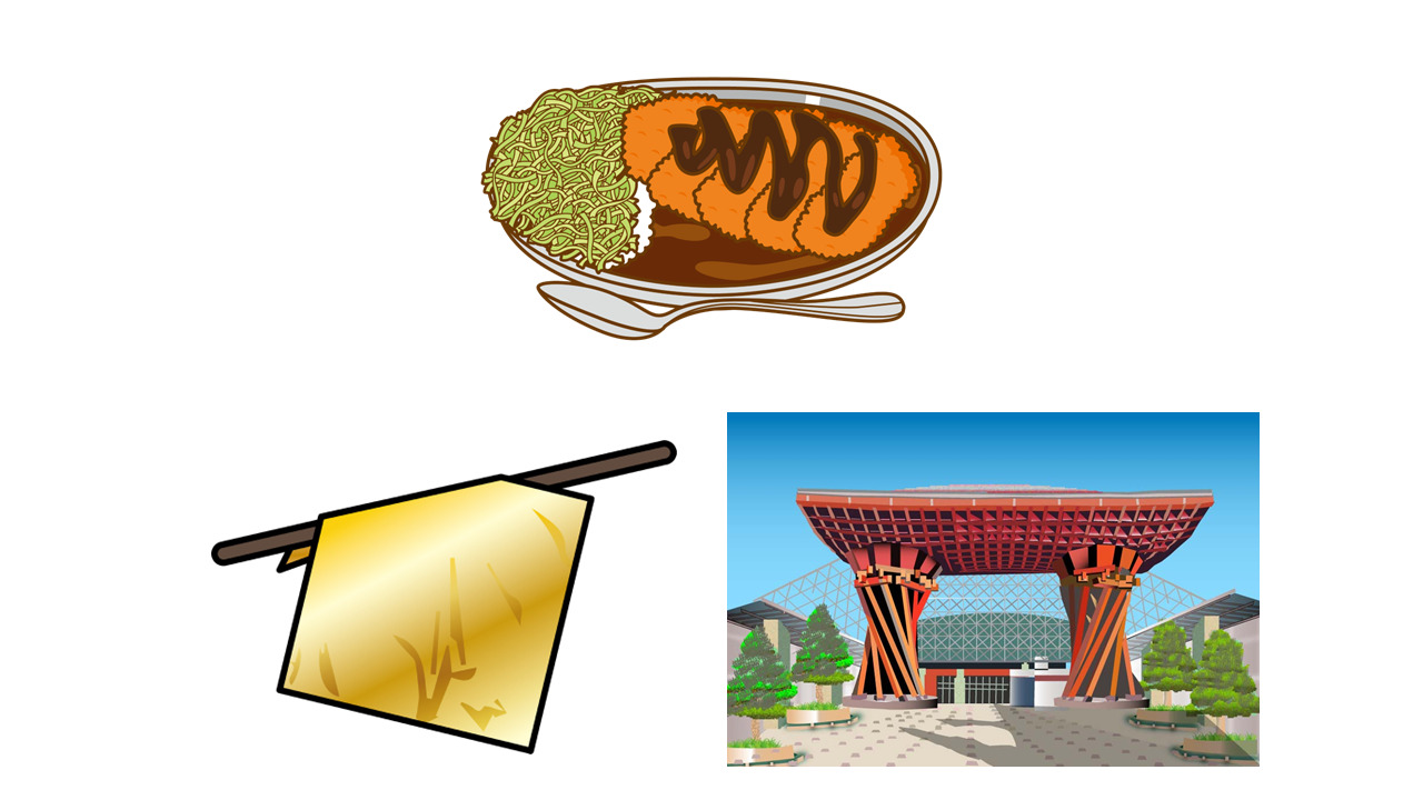 金箔:日本の金箔の99%は石川県でつくられています。湿度の高さが金箔生産に適しており金箔生産が発展しました。