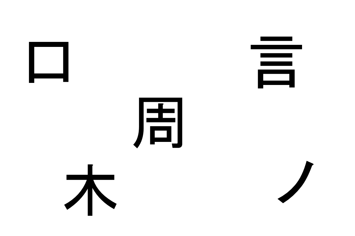 「口」「周」「言」「木」「ノ」を足して熟語を作ろう!- バラバラ漢字クイズ vol.23