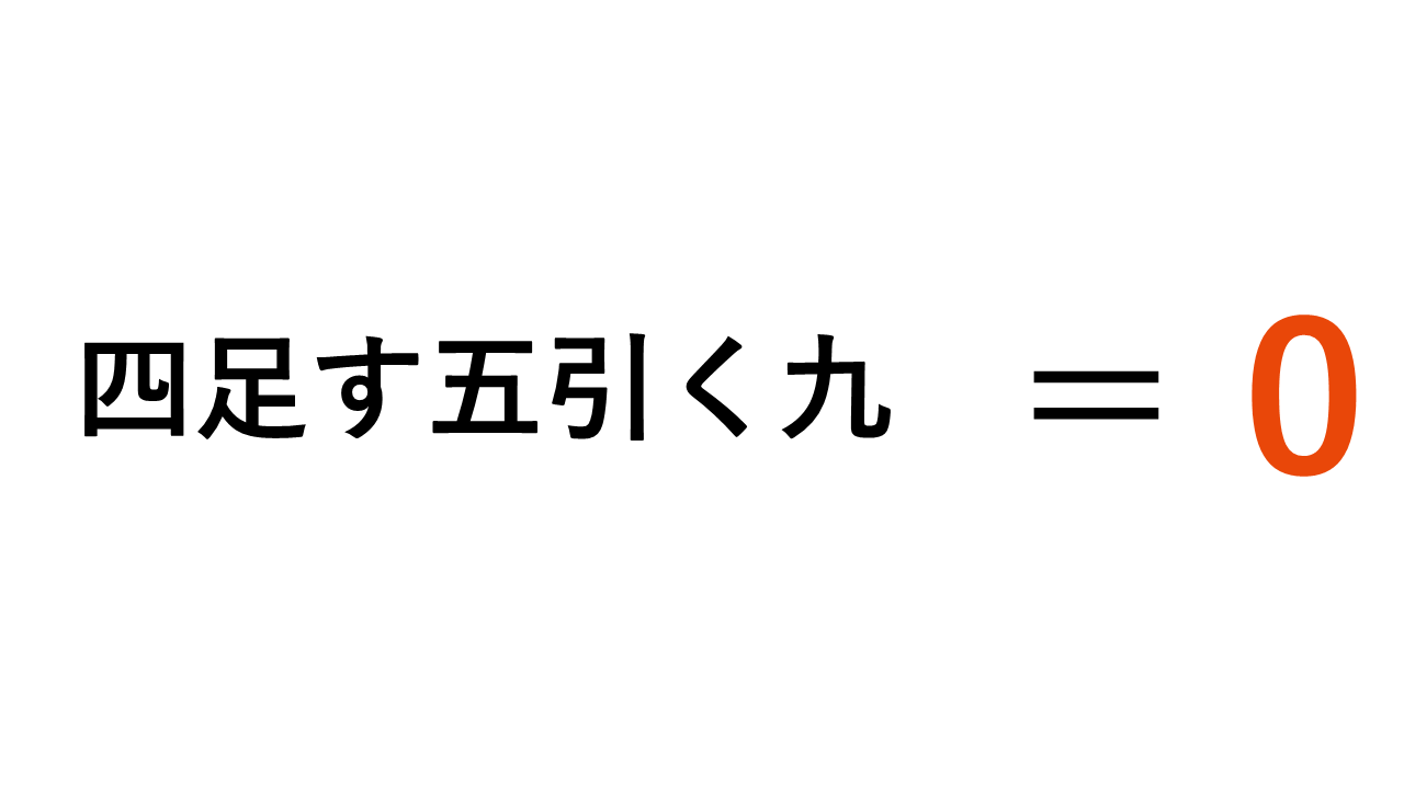 数字に戻すと「4+5-9=0」です。