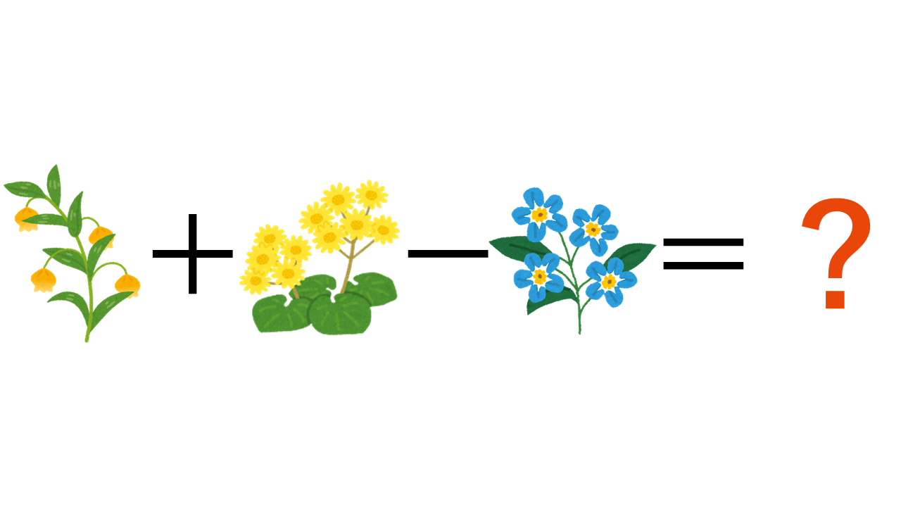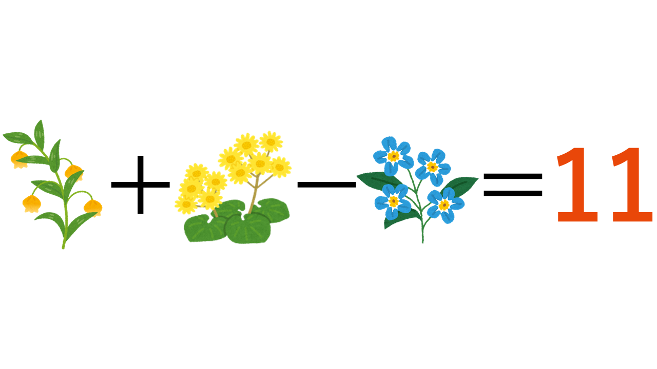 オレンジの花が4、黄色の花が11、青色の花が4で「4+11-4=11」です。