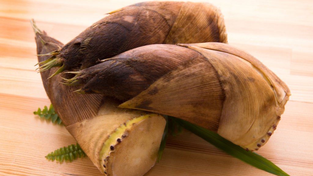 1枚目はタケノコで、先端に「姫皮」と呼ばれる部分があります。2枚目の椿はベルディのオペラに『椿姫』があります。3枚目は姫路城です。