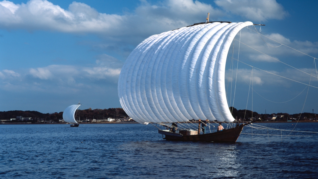 1枚目は弓道で使う「霞的」、2枚目は霞が関ビルディング、3枚目は霞ヶ浦の帆引き船です。