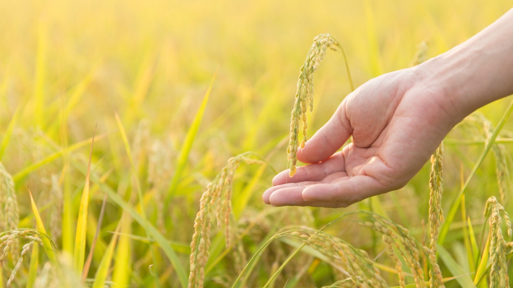 1枚目は鴨で合鴨農法という米の農法があります。2枚目は棚で棚田、3枚目は稲です。