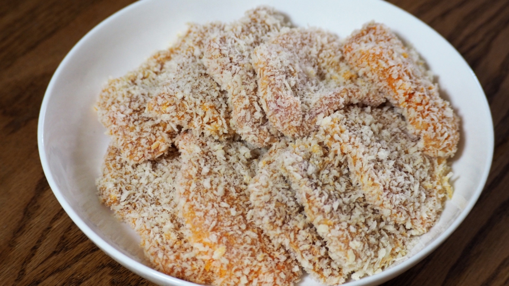 1枚目は「衣かつぎ」、2枚目は揚げ物の「ころも」をつけた様子、3枚目は白衣です。