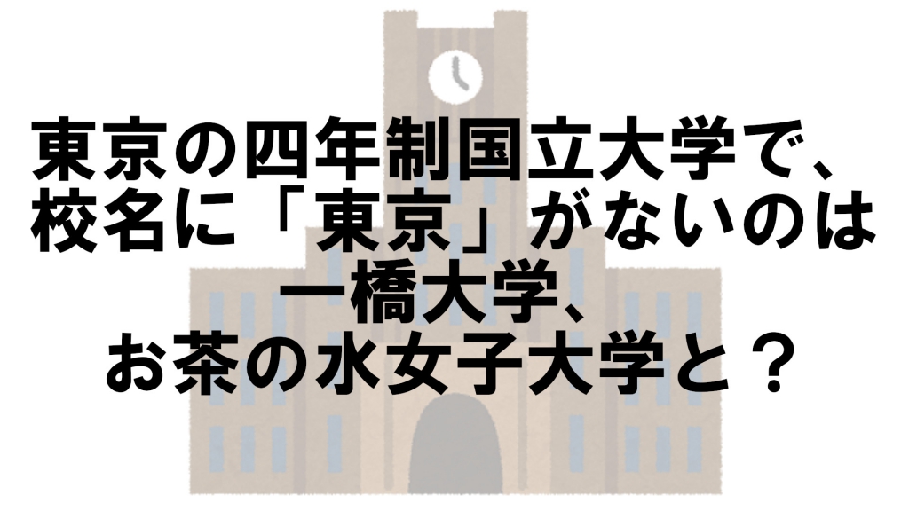 東京都にある四年制の国立大学で校名に「東京」が入らないのは一橋大学、お茶の水女子大学と何?