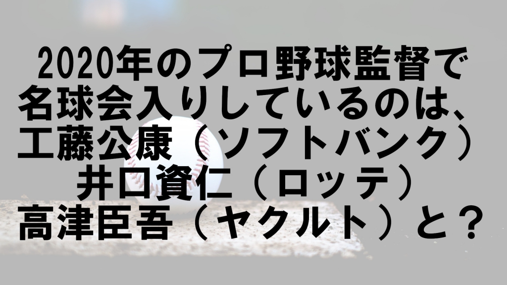 2020年のプロ野球監督で名球会入りを果たしているのは、工藤公康(ソフトバンク)、井口資仁(ロッテ)、高津臣吾(ヤクルト)と誰?