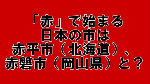 「赤」で始まる日本の市は赤平市(北海道)、赤磐市(岡山県)とどこ?