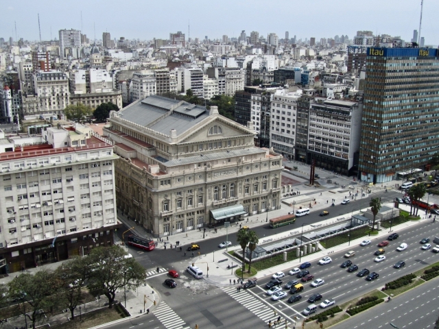 コロン劇場は石造りの外観が特徴です。ヨーロッパのオペラがオフシーズンの5月~11月にかけて有名なオーケストラがやって来ることで知られます。