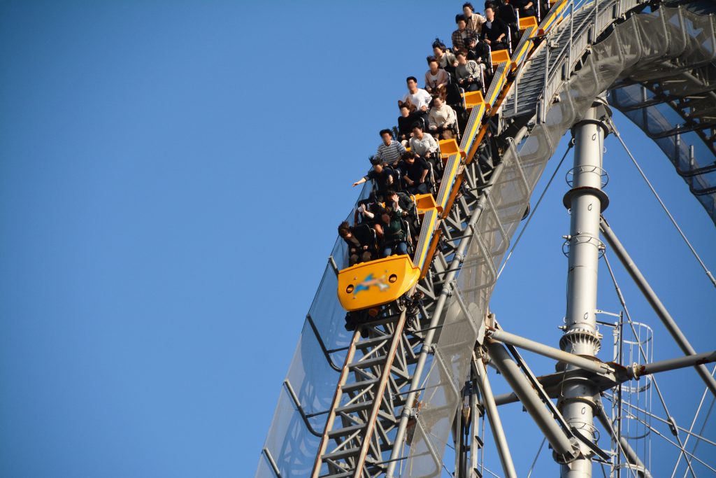 1874年、ニューヨーク、コニーアイランドに作られた「スイッチバック・グラビティ・プレジャー・レールウェイ」が世界最初のジェットコースターとされていますが、その時速はわずか10kmほどだったそうです。