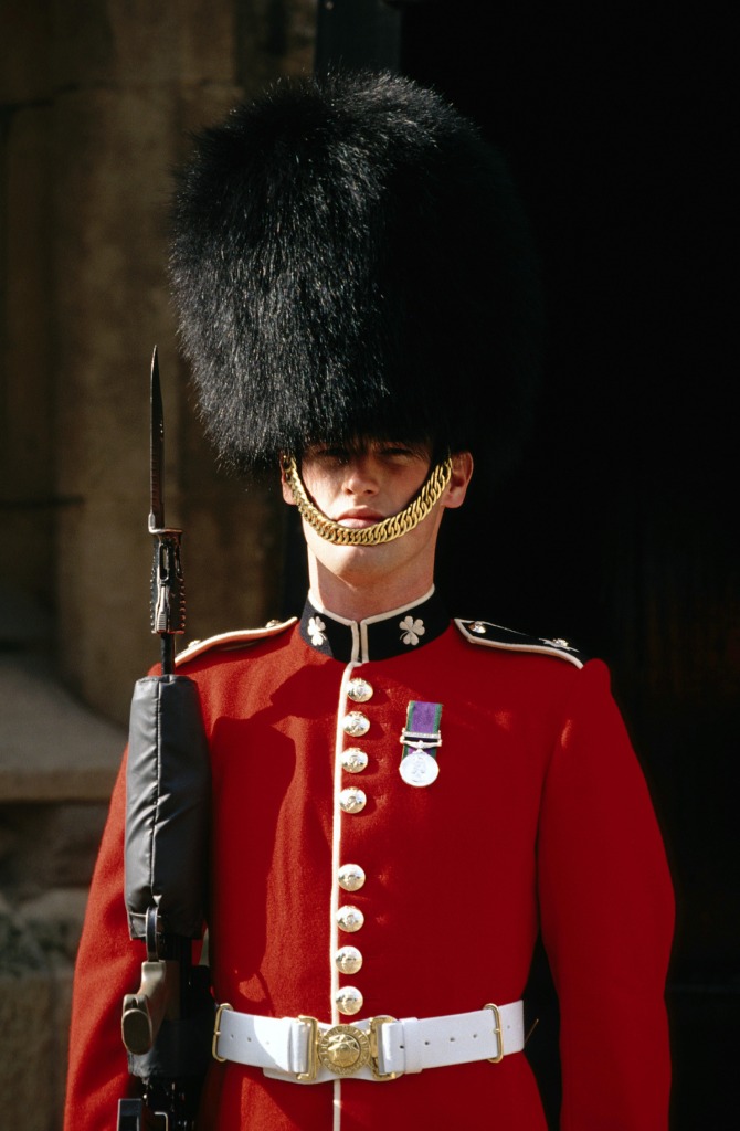 イギリス・ロンドンの衛兵がかぶる毛皮製の黒い帽子を何という?