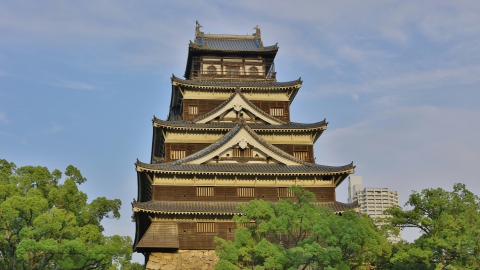 上は広島城です。松本城は天守閣の壁が黒いことから通称「烏城(からすじょう)」と呼ばれます。