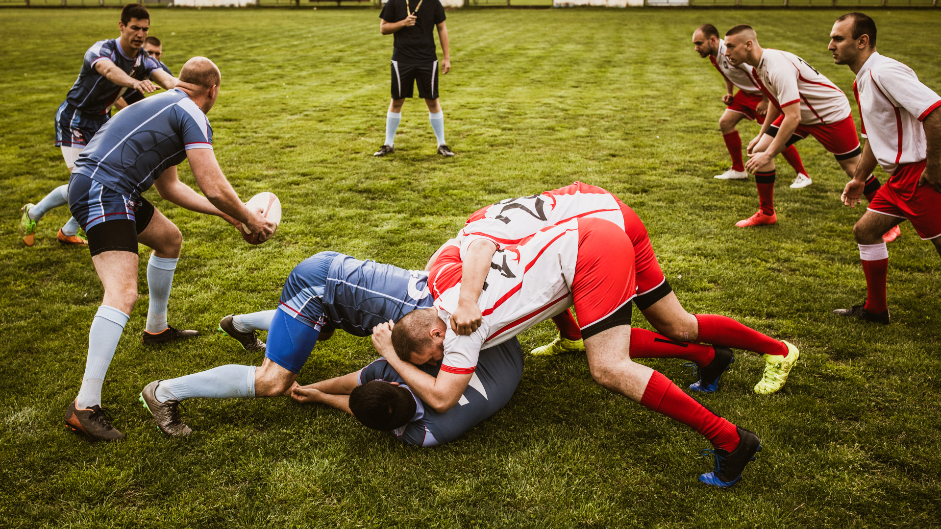 上はラグビーで1チーム15人、下はアメリカンフットボールで1チーム11人です。