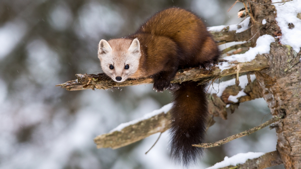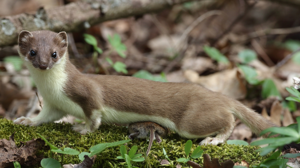 上はテンです。テンはおおむね体長40~50cmなのに対し、オコジョは20~30㎝程度です。