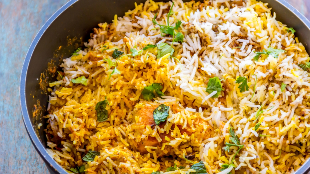 2はイタリアのリゾットです。ビリヤニはスパイスと肉や野菜を米とともに炊き込んだインド料理です。