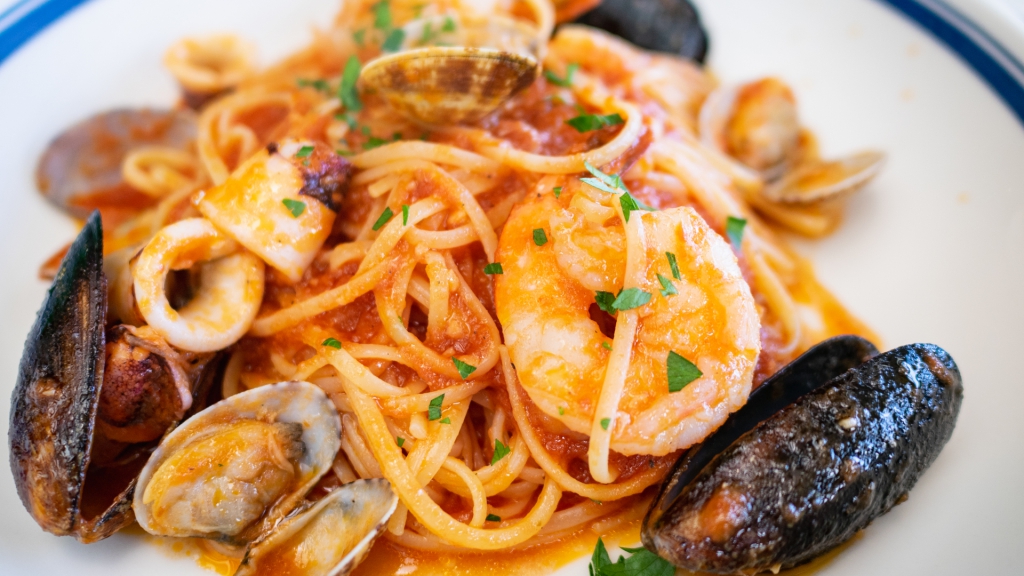上はアラビアータです。ペスカトーレは「漁師風」という意味があり、魚介類をふんだんに用いるのが特徴です。