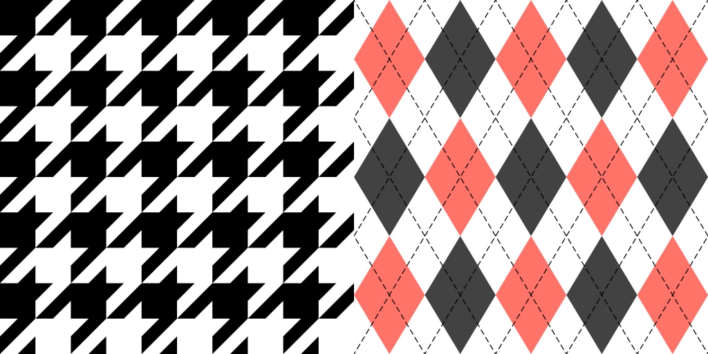 左は千鳥格子(ハウンドトゥース)です。アーガイルはスコットランドの地名に由来します。