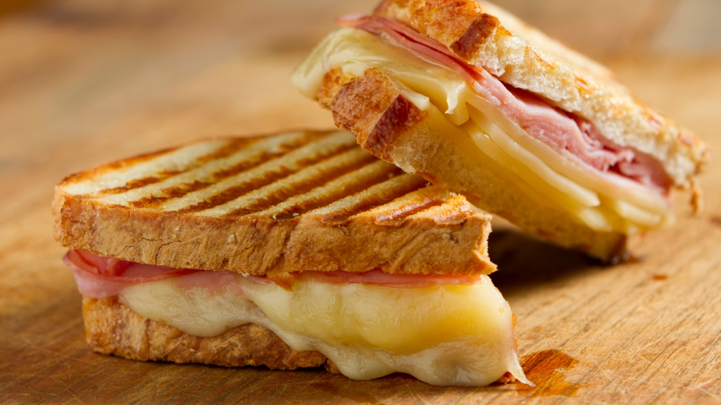 下はクロックムッシュです。パンにチーズとハムを挟んで焼いた料理がクロックムッシュで、それに目玉焼きをのせるとクロックマダムとなります。