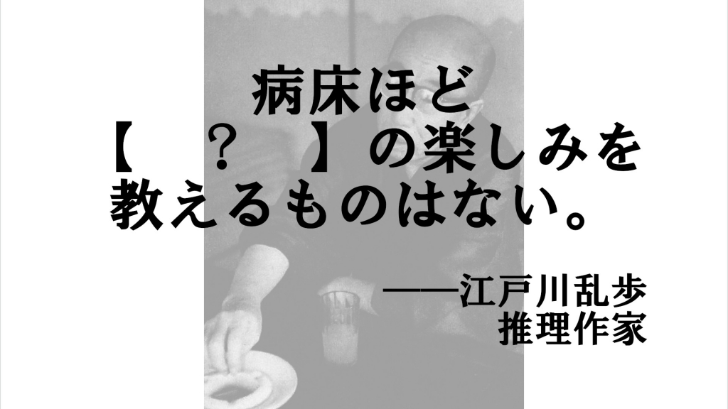 随筆『彼』の一文です。このあと「氷嚢、体温計、苦いけれど甘い水薬、熱病の夢、即興詩、石盤と石筆と、紙と筆と、そして絵と、絵文字と、この豊富な魅力が彼を病床に、引いては病気そのものに惹きつけた。」と続きます。