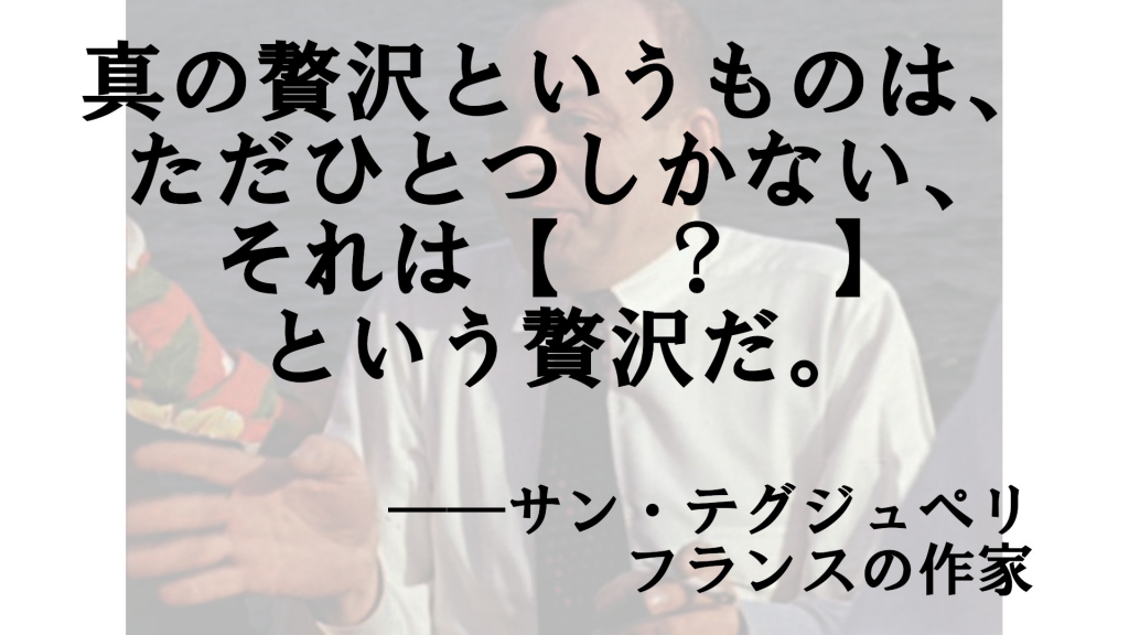 真の贅沢というものは、ただひとつしかない、それは【人間関係】という贅沢だ。