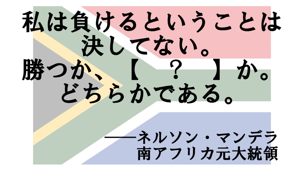 私は負けるということは決してない。勝つか、【学ぶ】か。どちらかである。