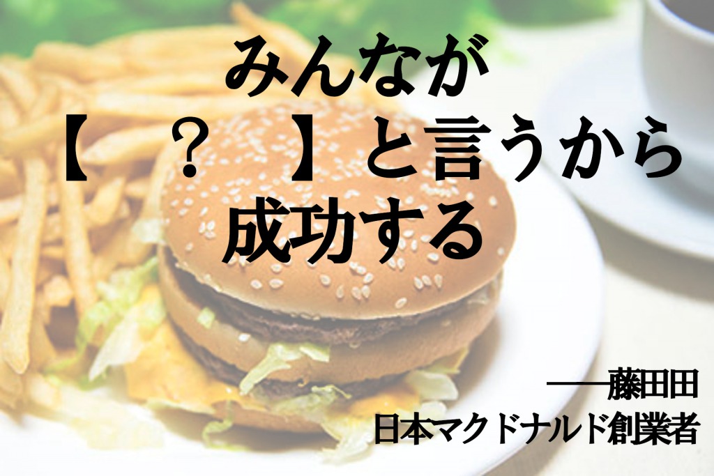 藤田田が日本マクドナルドを創業したとき、周囲はみんな反対しましたが「誰もが良いという事業はそれだけ競争が激しい。誰もやらないからうまくいく」という信念のもと大成功を収めました。