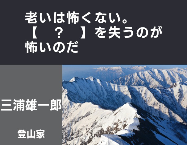 歳を取るのが怖いと思われている人も多いかもしれませんが、一番怖いのは何をする気力も失って、何も目的を持たずに日々過ごして死を迎えることだという、冒険家らしい言葉です。