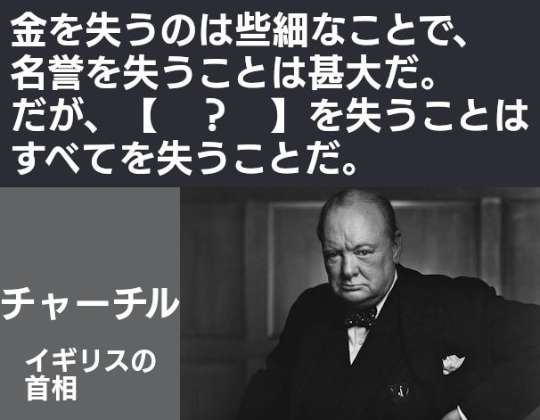 金を失うのは些細なことで、名誉を失うことは甚大だ。だが、【勇気】を失うことは、すべてを失うことだ。