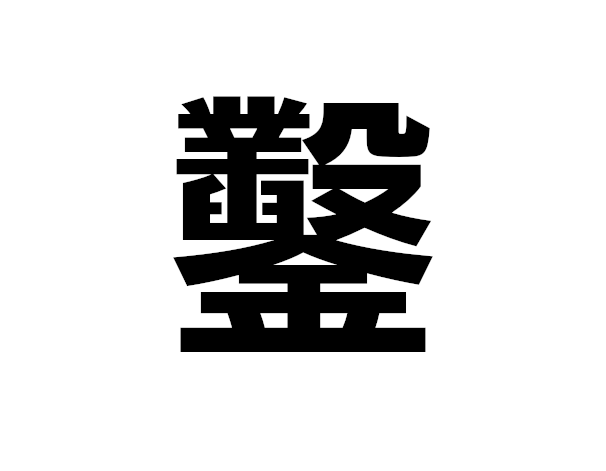 上の部分は人間がノミをうつ様子を表しており、ノミは金属でできていることから下に「金」がつけられたといわれます。
