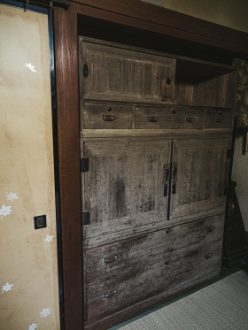 タンスの上部に金具につけ、そこに棹を通して担いで運んでいたため