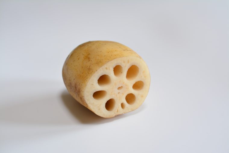 レンコンは泥の中で育ちますが、その際に地上にあるハスの葉っぱから酸素を取り込むために穴があいています。ちなみに正月のおせち料理でレンコンを使うのは穴があいていることから「将来の見通しがきく」という意味が込められています。