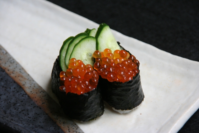 この理由は、そのまま醤油をつけようとするとイクラがぽろぽろこぼれてしまいます。そのため一度キュウリを取って、そこに醤油をつけてイクラの上に垂らすことできれいに食べられるためです。