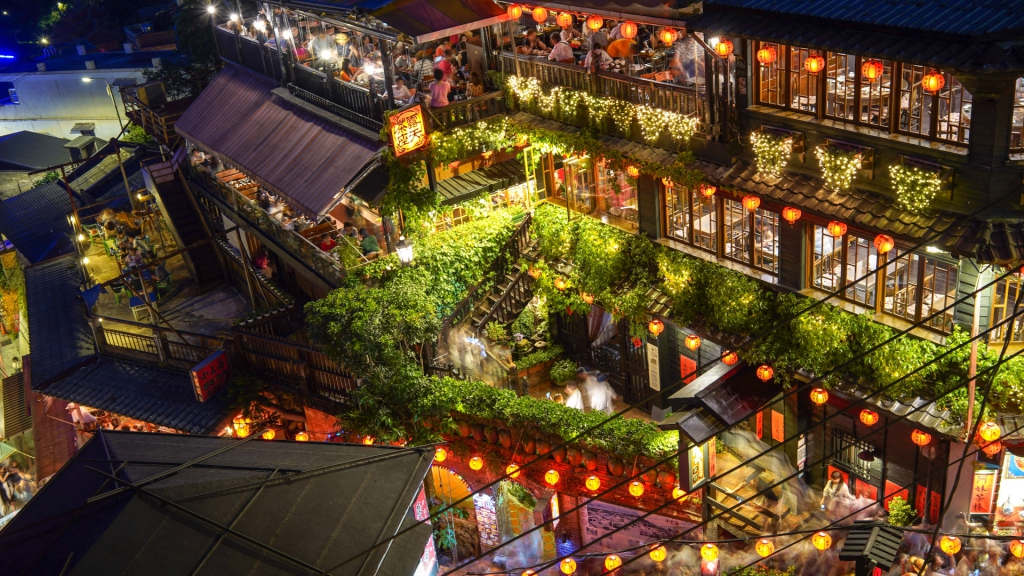 提灯でライトアップされた町並みが映画『千と千尋の神隠し』に雰囲気が似ていることで人気の、台湾北部、新北市にある街は何?
