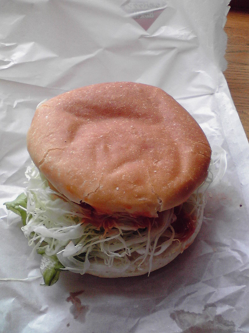 霞ヶ浦で獲れたなまずをフライにしてバーガーにした「なめパックン」という料理です。