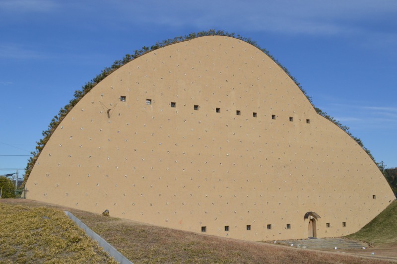 多治見市はモザイクタイル生産量日本一で、それに因む施設です。タイルの原料を掘り出す粘土山のような外観は、一見何の施設かわかりません。(画像出典:https://upload.wikimedia.org/wikipedia/commons/1/19/Mosaic_Tile_Museum_Tajimi_exterior_ac.jpg)
