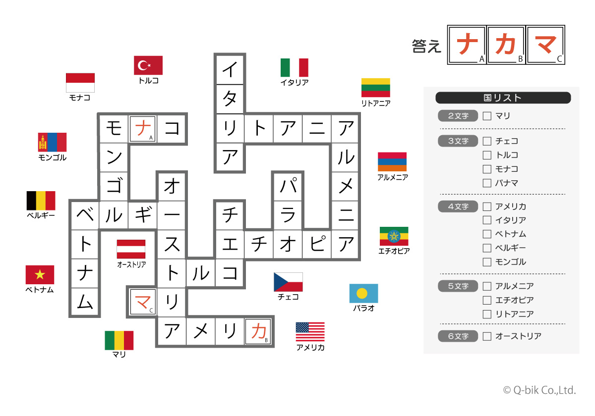 国旗もチェックしながらパズルにトライすると、あなたは国際通?!